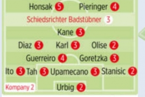 NBA直播12月22日讯 德甲第15轮比赛,拜仁客场4-0击败海登海姆,德国媒体《图片报》对球员进行评分,乌尔比希、奥利塞、斯坦尼西奇2分最高。