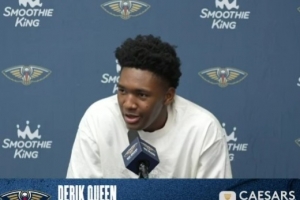 NBA直播10月25日讯 NBA常规赛,鹈鹕主场116-120加时不敌马刺。赛后,13号秀奎因接受了采访。