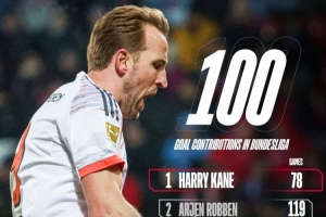 NBA直播12月22日讯 德甲第15轮,拜仁客场4-0大胜海登海姆。本场比赛,凯恩打入一球,这是他在德甲参与的第100个进球,具体数据为81个进球和19个助攻,他只用78场联赛就达成这一成就。