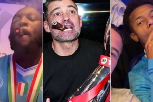 NBA直播12月23日讯 在那不勒斯夺得意大利超级杯冠军后,卢卡库、内雷斯抽雪茄庆祝。