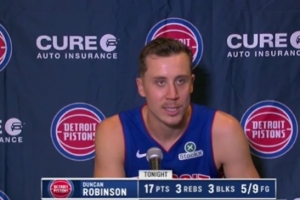 NBA直播10月25日讯 NBA常规赛,活塞115-111险胜火箭。赛后,活塞球员邓肯-罗宾逊接受了采访。