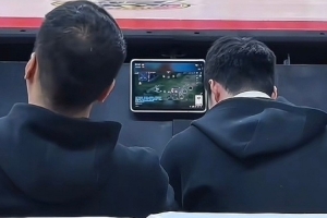 NBA直播12月23日讯 媒体人导演我躺哪今天在微博上晒出一张宁波男篮比赛期间、工作人员的屏幕在播放游戏直播画面的照片,并写道:“这CBA一天天太精彩了,在昨晚吉林对阵宁波的比赛中,有球迷在现场拍到宁波男篮替补席的工作人员正在看游戏直播。”
