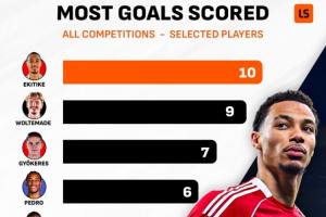 NBA直播12月23日讯 上周末英超第17轮比赛结束,英国媒体LiverScore列出了本赛季英超部分新援前锋的进球数,埃基蒂克打入10球排名第一。