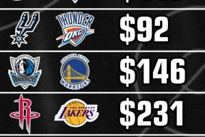 NBA直播12月25日讯 今日美媒Buckets统计了明天5场圣诞大战的最低票价,具体如下:
