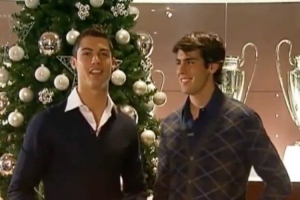 NBA直播12月25日讯 今日是西方传统节日圣诞节,DAZN社媒晒出2009年C罗和卡卡两人一起圣诞视频。