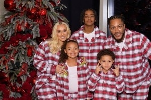 NBA直播12月26日讯 德里克·罗斯的妻子Alaina Rose晒出了一家人的圣诞合照。