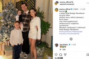 在银装素裹的圣诞树前,什琴斯尼身着休闲格子衫,怀抱小女儿,身旁是妻子和儿子。什琴斯尼用波兰语向球迷们送上了诚挚的祝福,祝愿大家拥有“内心平静”与“充满温情”的节日时光。