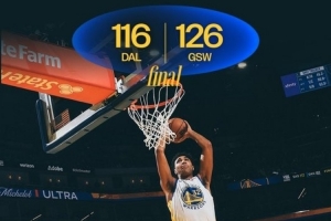 NBA直播12月26日讯 圣诞大战,勇士主场126-116击退独行侠,取得3连胜。
