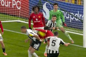 NBA直播12月27日讯 曼联vs纽卡第64分钟,利桑德罗·马丁内斯禁区内手球,VAR介入,随后裁判示意比赛继续。