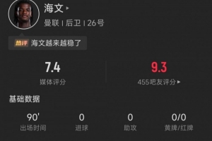 NBA直播12月27日讯 今天凌晨,曼联在英超联赛1-0击败纽卡斯尔,以下为曼联年轻后卫海文本场比赛的数据。
