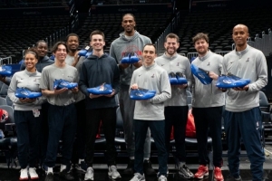 NBA直播12月27日讯 奇才球员萨尔和他的赞助商迪卡侬,为华盛顿奇才队的工作人员送上了他专属的球鞋Blue Canaveral 900 Sarr。