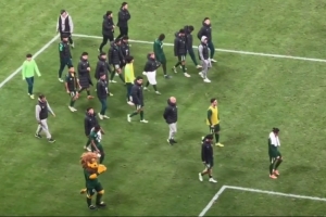 博主“斯文已逝”写道:国安赛后谢场环节应该是有人提前回更衣室了,顶着全场嘘声和“丢人现眼”的喊声走了一圈,另一边海牛功臣萨里奇获得大片掌声。