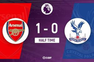 上半场伤停补时2分钟,半场结束,阿森纳暂1-0水晶宫。