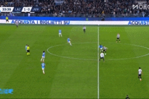NBA直播10月27日讯 意甲第8轮,拉齐奥对阵尤文图斯。34分钟,坎比亚索直塞,戴维单刀机会小角度射门被扑。