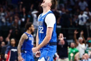 NBA直播10月27日讯 NBA常规赛,独行侠139-129击败猛龙,比赛中独行侠球员弗拉格隔扣猛龙球员桑德罗-马穆凯拉什维利震惊全场。