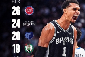 NBA直播10月28日讯 欧媒BasketNews报道,赛季至今文班出场三场比赛,共计送出18次封盖,场均可以贡献6次封盖。