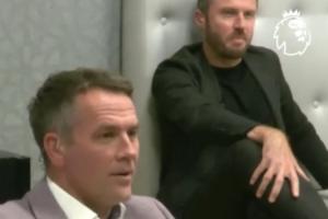 NBA直播10月20日讯 本轮英超曼联客场2-1击败利物浦,笑傲双红会,赛后英超官方发布了一段欧文和卡里克观看比赛直播时的反应。