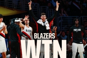 NBA直播10月28日讯 开拓者客场122-108力克湖人。