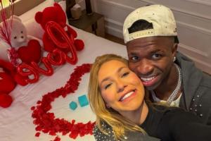 NBA直播10月28日讯 皇马边锋维尼修斯近期陷入国家德比被换下时情绪爆发的争议中,但他在情场上可谓春风得意:他在社媒晒出与女友弗吉尼亚的甜蜜合照,为女友营造了浪漫的鲜花氛围。