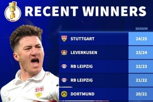 NBA直播10月29日讯 《转会市场》统计了近10年德国杯冠军,拜仁3次居首但已5年未能夺冠,多特、莱比锡各2冠。